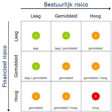 Het risicoprofiel van een verbonden partij wordt bepaald door de hoogte van het financieel en bestuurlijke risico te combineren met inachtneming van de bestuurlijke relevantie. Dit maken we inzichtelijk door middel van onderstaand schema.